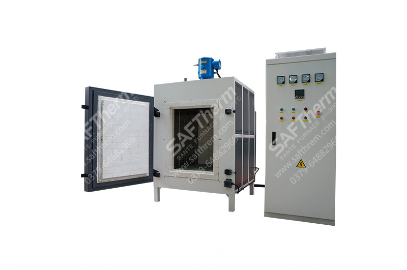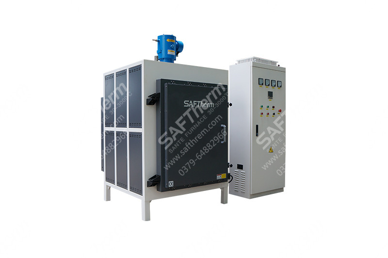 【应用领域】STDR系列空气热风循环炉额定温度850℃,炉膛采用轻质莫来石耐火砖材料特殊搭建拼装,电阻丝缠绕在陶瓷管上兵分布在炉膛两侧,炉顶设计热循环风机,炉膛内有不锈钢导流板,启动风机使炉内空气强制循环,提高炉内温场均匀性;温控采用触摸屏PID30段程序控温,机械传动控制集成在温控箱上,操作便捷;此设备主要应用于金属磨具及其他金属材料的退火等热处理工艺。